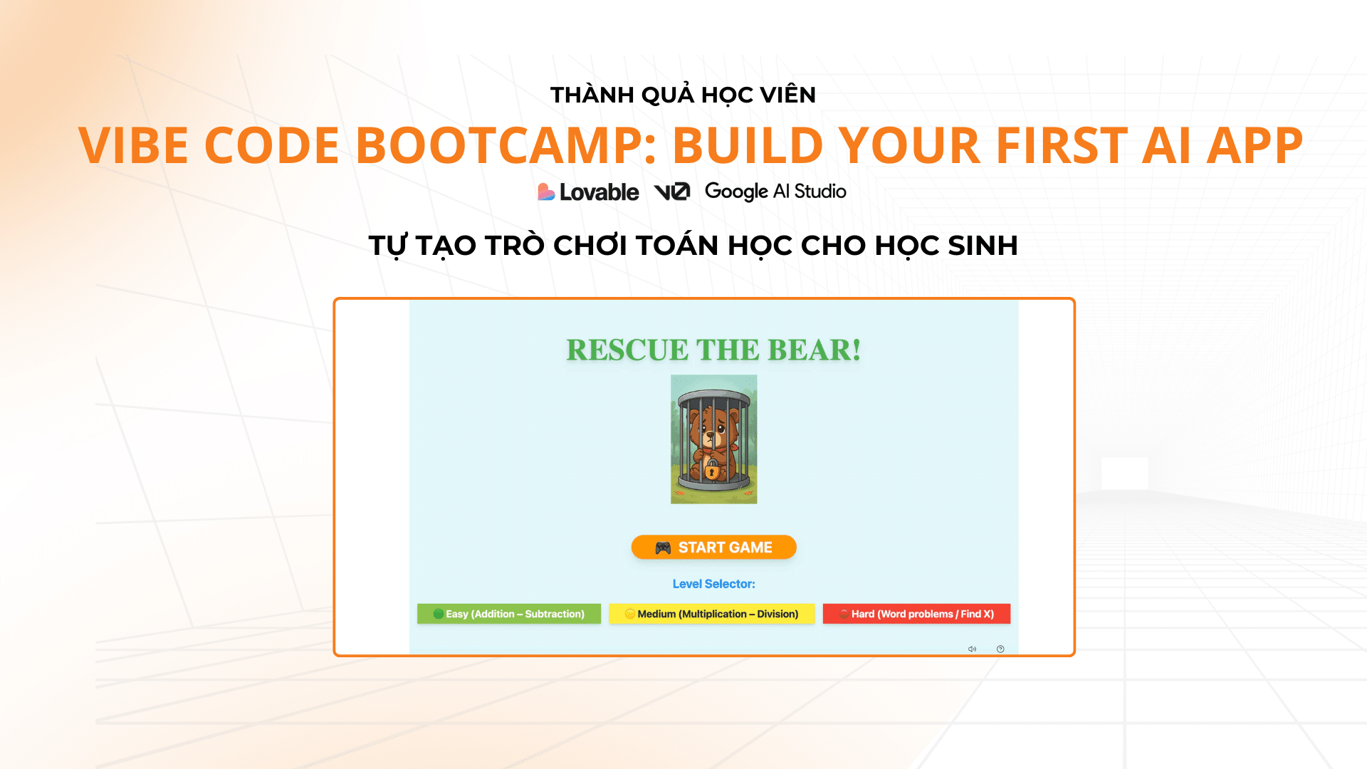 Trò chơi giáo dục giúp học sinh luyện tập toán học thông qua nhiệm vụ “giải cứu gấu con”, được tạo hoàn toàn bằng công cụ AI và no-code.