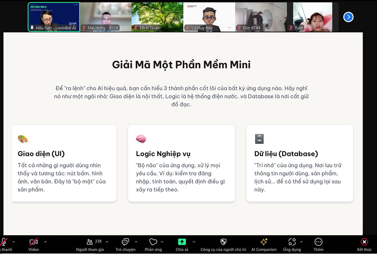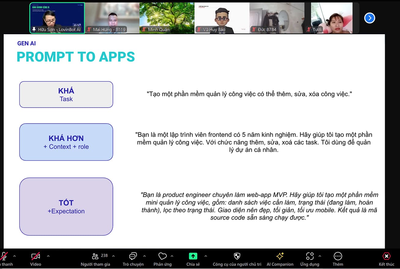 Thích nhất là tạo game cho trẻ con chỉ bằng vài prompt. Sau khóa học, mình tự làm được một sản phẩm giáo dục hoàn chỉnh.