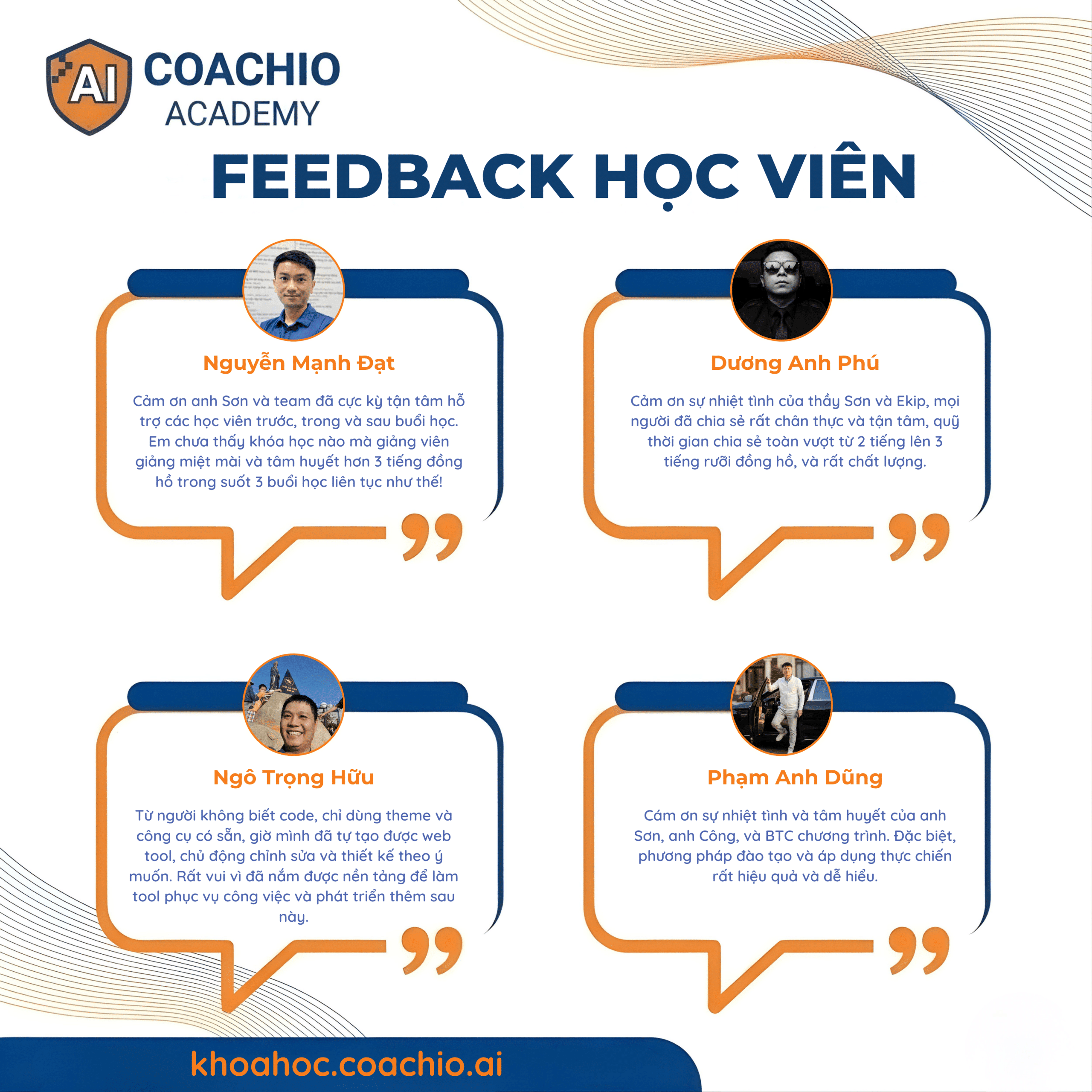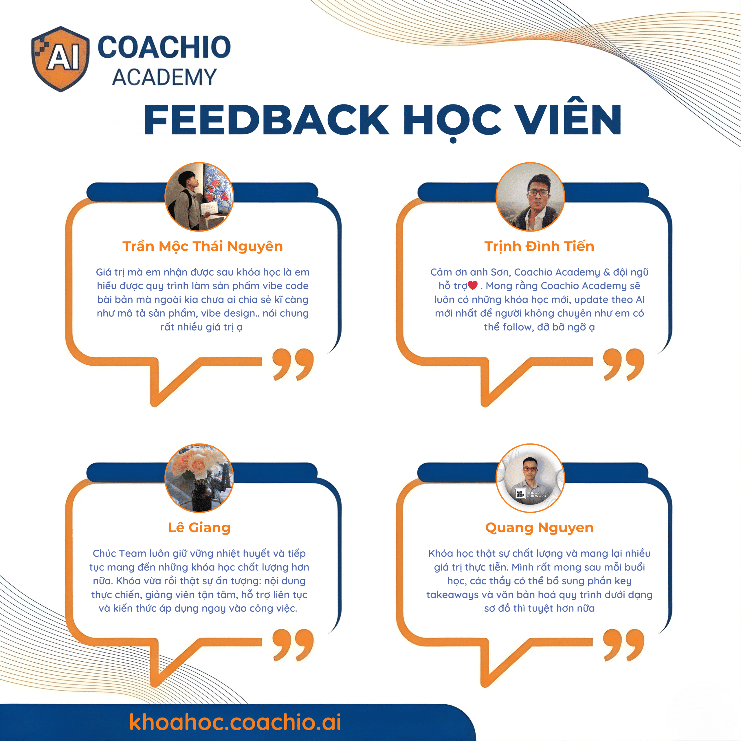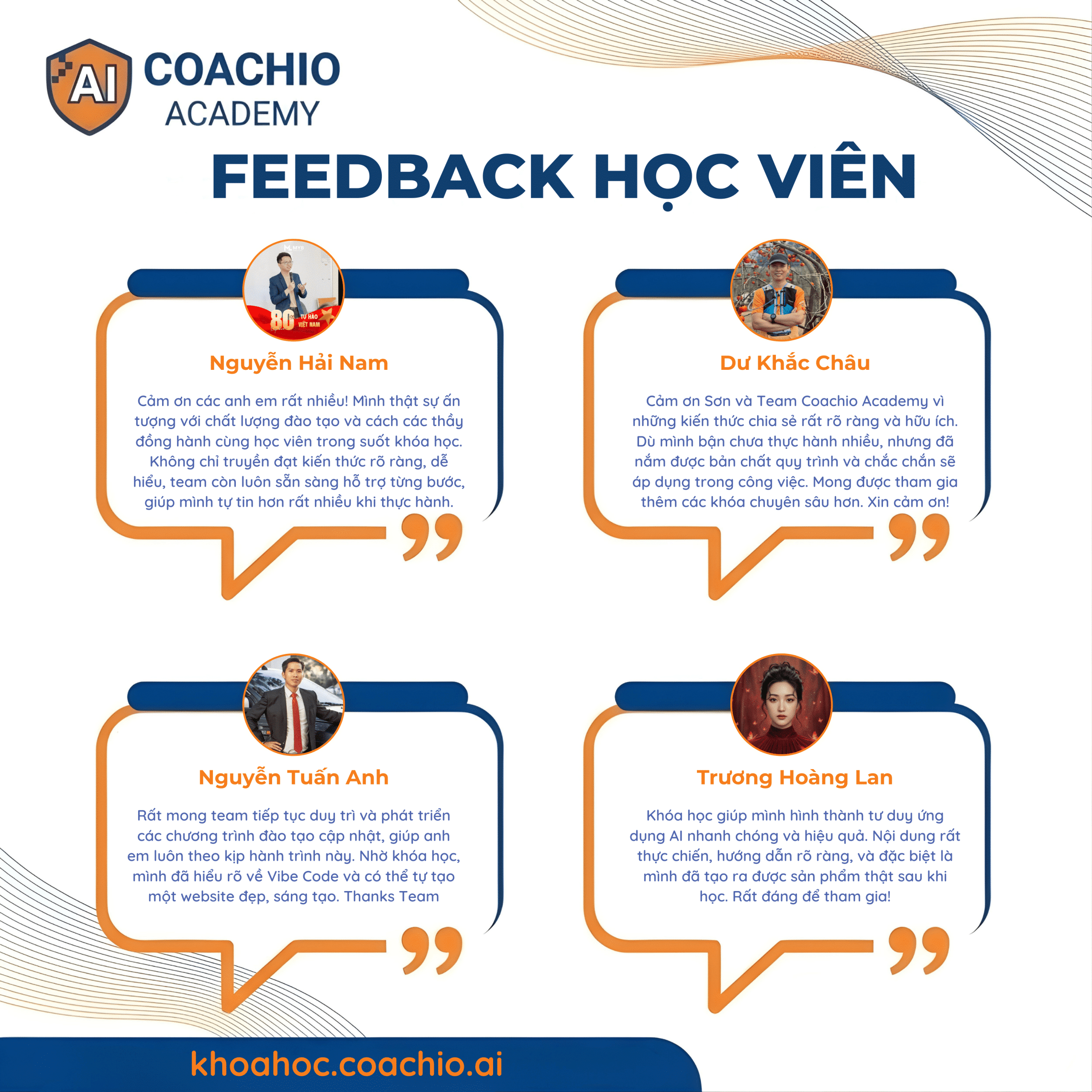 Xem những gì học viên của chúng tôi chia sẻ và quan trọng là các chương trình đã thực sự giúp cho học viên có nhiều sự tự tin và kỹ năng vibe code hơn để tự làm các dự án từ đơn giản đến phức tạp.