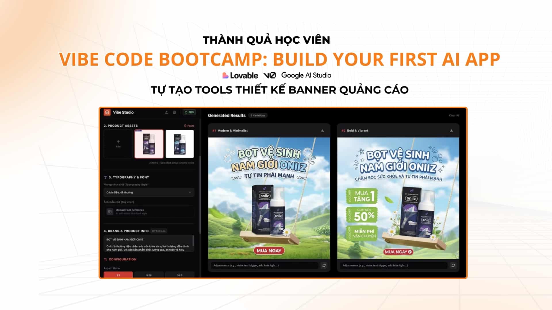 Vibe Creators 101 chương trình đào tạo elearning bài bản đầu tiên tại Việt Nam nhằm nâng cao kỹ năng thực chiến Vibe Code cho những người sáng tạo sản phẩm AI bằng cảm hứng và tư duy, không cần hiểu sâu nền tảng kỹ thuật.