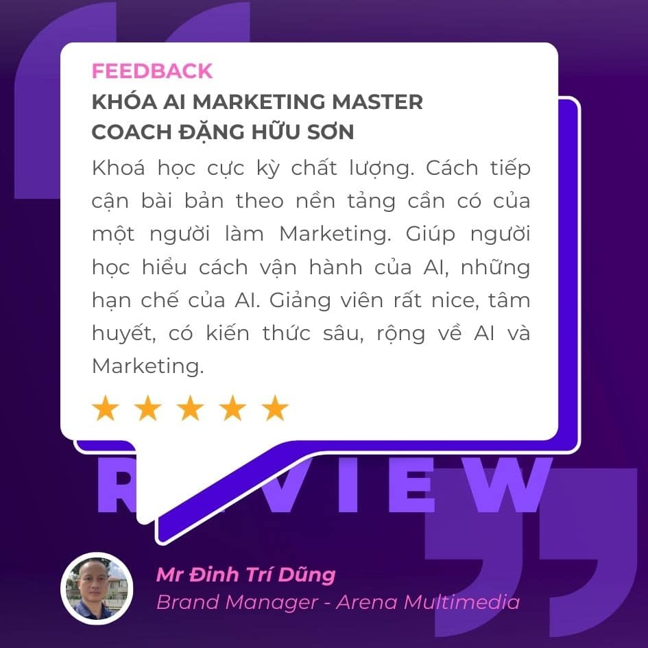 Đập tan nỗi sợ công nghệ, cài đặt tư duy AI-First và nắm trọn bộ công cụ AI MARKETING xịn xò, hiệu quả cao.