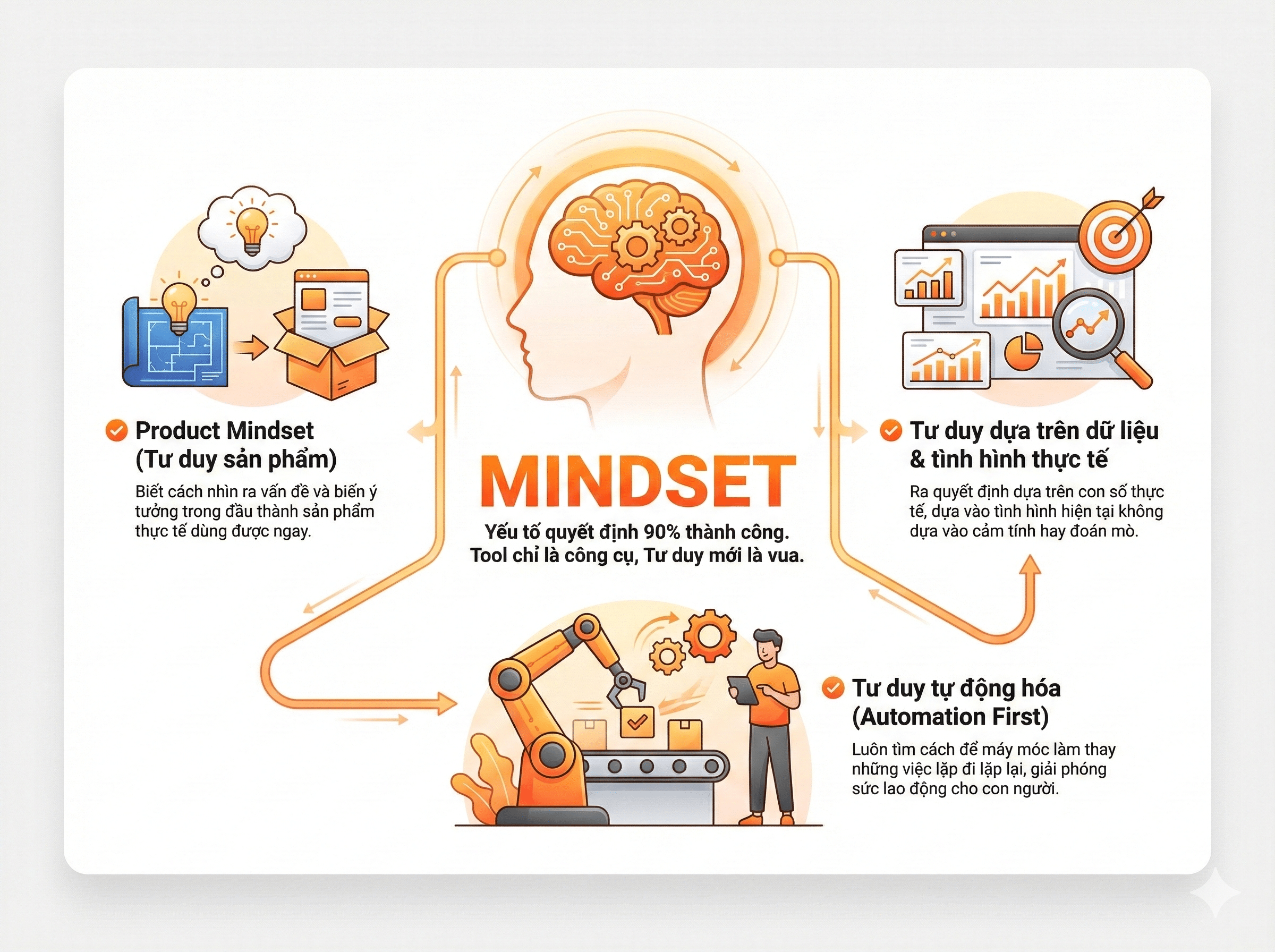 Yếu tố quyết định 90% thành công. Tool chỉ là công cụ, Tư duy mới là vua.
