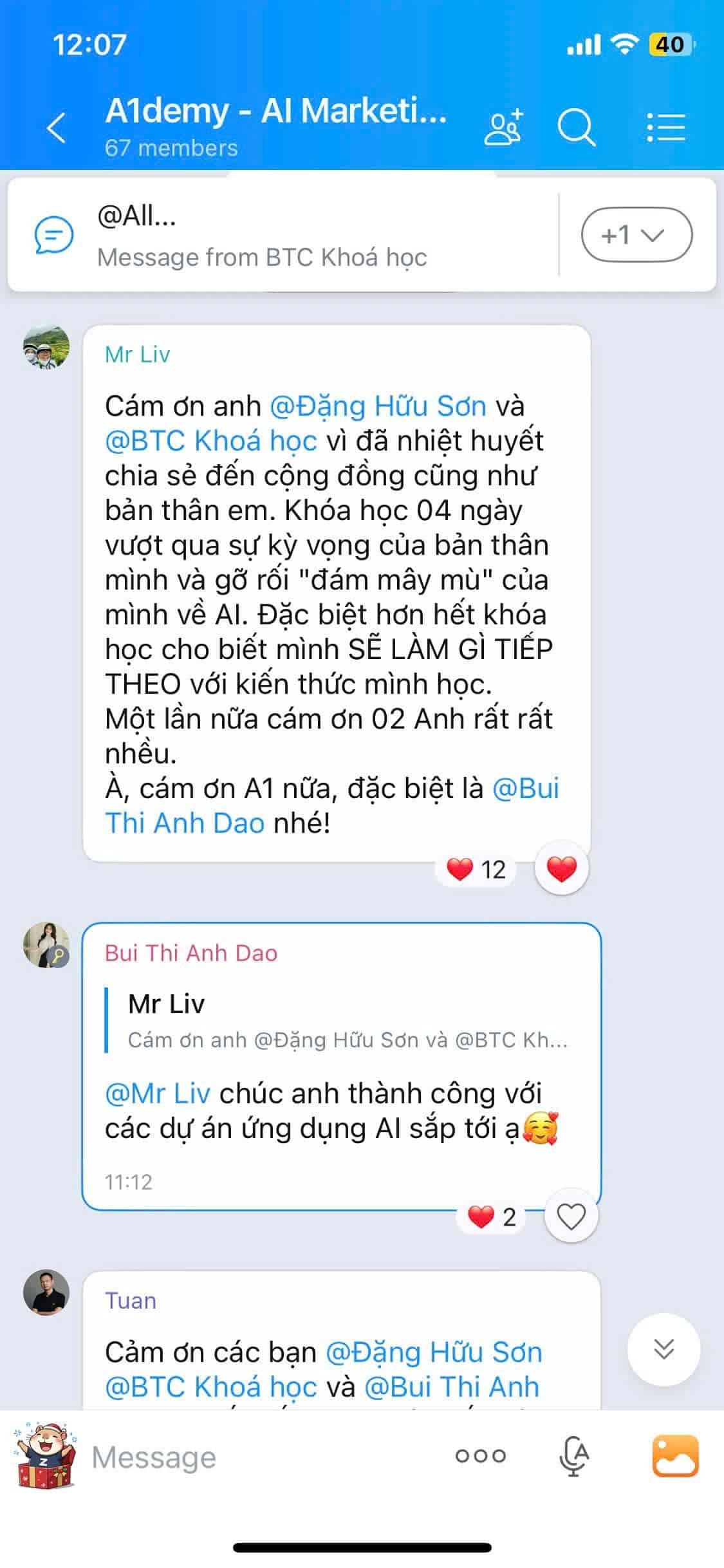 Xem những gì học viên của chúng tôi chia sẻ và quan trọng là các chương trình đã thực sự giúp cho học viên có nhiều sự tự tin và kỹ năng vibe code hơn để tự làm các dự án từ đơn giản đến phức tạp.